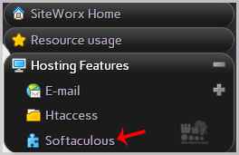 2. Under SiteWorx Menu, click the Hosting Features menu item if it is not already open.