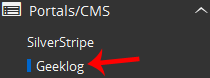 4. On the left side of your screen, you should locate the Portal/CMS category. Click on it and then click on the Geeklog link that will appear.