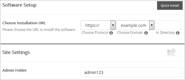 - Choose Installation URL: Choose the appropriate protocol/domain. Inside the "In Directory" field, should you want to install this in a directory, i.e., example.com/directory, enter the directory name. Otherwise, leave it blank to install in your main domain, i.e., example.com