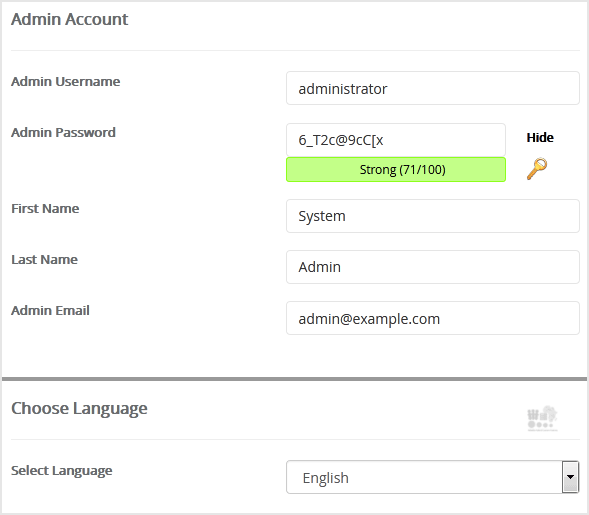 - Admin Email: Your e-mail address. (Useful for administrator account password reset, notification, etc.)