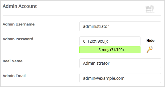 7. Under the Admin Account field, enter the following information: