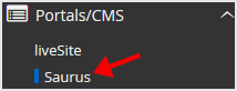 4. On the left side of your screen, you should locate the Portal/CMS category. Click on it and then click on the Saurus link that will appear.